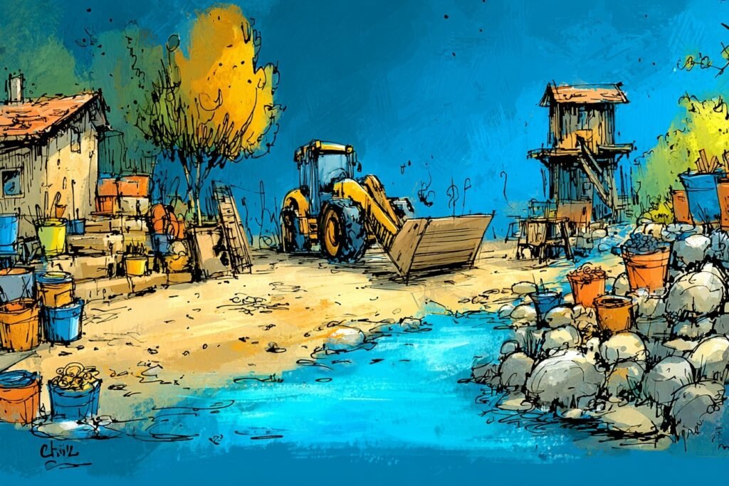 • Coordination mini-pelle/ouvriers : règles de coordination (qui intervient, où, quand) ; consignes pour éviter une présence non maîtrisée à proximité.