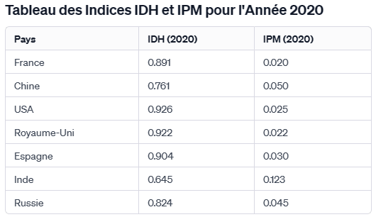 • Éducation : Un pays comme l’Espagne, avec un système éducatif accessible et de qualité, aura un faible score IPM dans cette dimension.